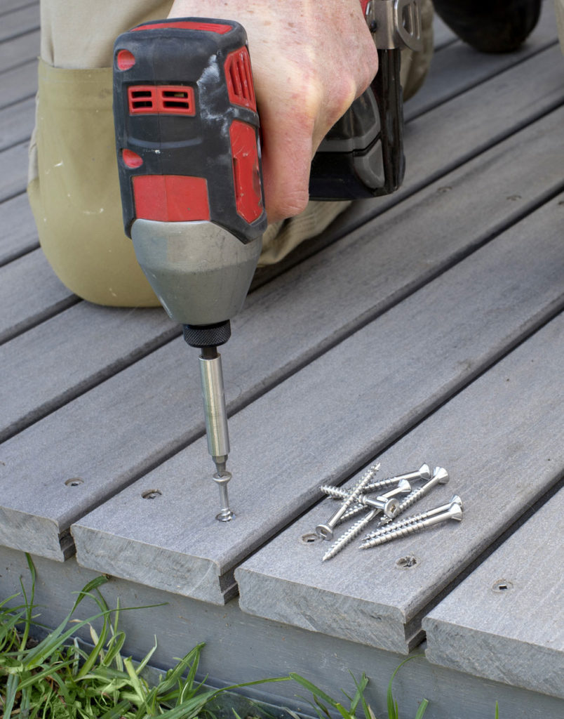 Unlike wood, composite decking doesn’t need to be sealed or painted and generally has a longer life with minimal maintenance. Occasionally cleaning your decking with soap and water to remove build up of muck and grime, will help extend its life and keep it looking new.