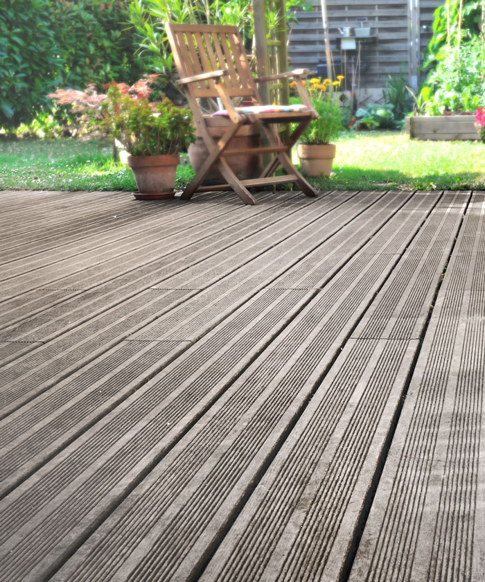 Our wood decking solutions are designed to be non-slip. Without regular maintenance however, dirt may build up over time making the surface slippery.